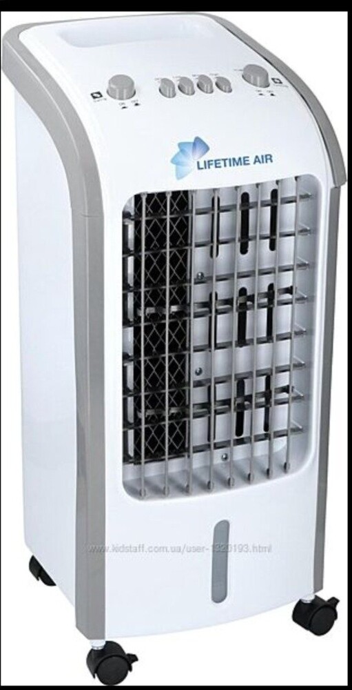 Цей Lifetime Air має знімний 4-літровий бак. Тут крім води можна додати елементи, що охолоджують, або лід. Це залежить від бажаного рівня холоду повітряного потоку. Робочий охолоджувач повітря зволожує повітря в будинку, а також забезпечує його очищення.